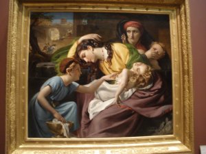 Esther says, “I thought it very touching to see these two women, coarse and shabby and beaten, so united; to see what they could be to one another; to see how they felt for one another, how the heart of each to each was softened by the hard trials of their lives.  I think the best side of such people is almost hidden from us. What the poor are to the poor is little known, excepting to themselves and God” (p 124). Even though the women in this painting are not of the lower class as in Bleak House, death affects all the classes just the same, as seen in the faces of the women, and the written words of Dickens.