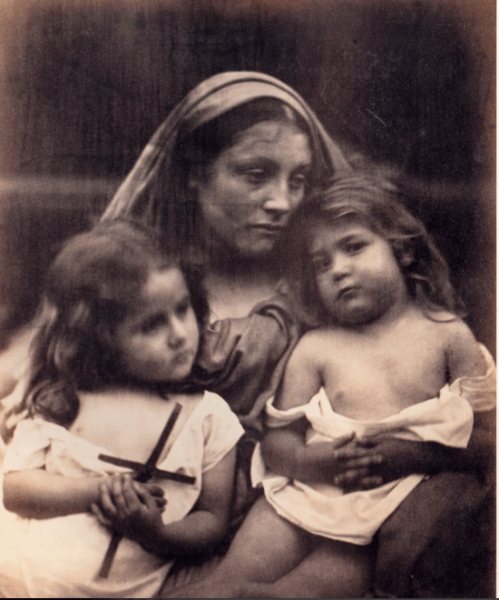 I definitely agree with Lucy’s comment that in both Lange and Cameron’s photos, the mother is the main focus as opposed to the child and she also does seem to possess an all-knowing source of wisdom. However, I think that there is one important contrast. Cameron’s photos are ethereal while Lange’s photos are more earthly, and depict real, dirty people, toughened by their conditions.