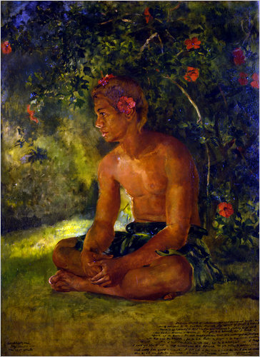 Maua, Apia. “One of our boat crew,” from Samoa… See the notes at the bottom right corner of the painting?
