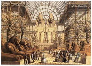 We were discussing the Crystal Palace a few weeks ago in class. The Crystal Palace was home to the Great Exhibition of 1851, which was meant to display the latest technology and fashionable objects from all over the world.
