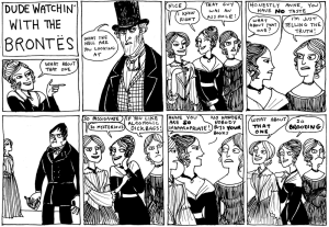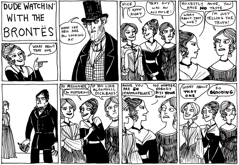 Titled Dude Watchin’ with the Brontes. This comic makes fun of Anne Bronte (the slightly less popular author out of the Bronte sisters) and her taste in men.