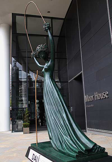 Dali also created a bronze sculpture of Alice in 1977, about 5 meters high titled “Alice in Wonderland”. It is similar to his earlier illustrations of Alice as a girl with a jump rope over her head in mid-jump, but the sculpture has roses in place of hair and hands. It is currently on display in London.