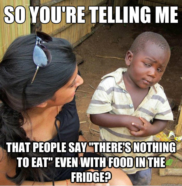 Skeptical Third World Kid meme examples from http://www.quickmeme.com/Skeptical-Third-World-Kid/ and Google Images.