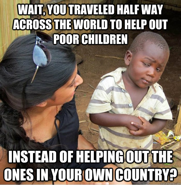 First, thanks for including Skeptical Third World Kid in this post; I’d never seen those memes before and they’re GREAT (although, if we were going to get really critical, still an example of using “others” to explicate/work through our own issues).