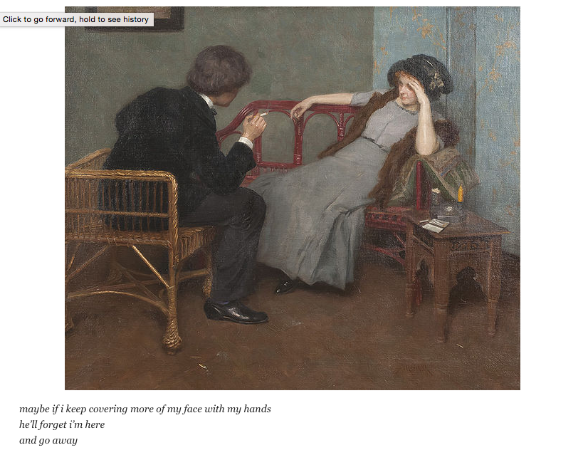 I just found this very important, very (perhaps more) relevant post by Ortberg on The Toast, Women Having A Terrible Time at Parties in Western Art History: http://the-toast.net/2014/10/28/women-terrible-time-parties-western-art-history