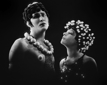 Salome, played by the famous silent film and Broadway actress Alla Nazimova, has all kinds of idiosyncrasies that contribute to the film’s rather outré nature—just check out her eyebrows! (43:14 at https://www.youtube.com/watch?v=BkMq_Cs3OUs should give you a good look.) The biblical seductress’ look shifts from medusa-esque (she shows off a head full of bobbing lights for most of the film) to Lady-Gaga-like when she emerges for her sultry dance of the seven veils in a glowing white bob.