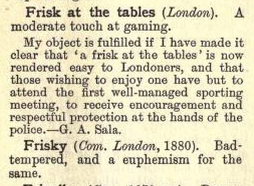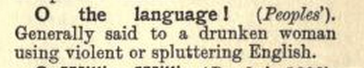 The online world is a horribly dangerous (yet wonderful) place for procrastination and entertainment. I came across this book that can be publicly accessed entitled Passing English of the Victorian Era by a James Redding Ware (who, interestingly enough, created one of the first female detectives in fiction, yay!). It is a collection of slang and phrases heard at this time period, and interestingly enough, some of them seem to have survived today!