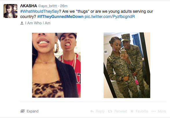 It reminded me of a twitter campaign that happened in August right after Ferguson, entitled #iftheygunnedmedown.   In this campaign, young black people used the ostensibly more democratic form of social media to protest the way that the media was reframing and re-editorializing narratives of violence via their selection of images.