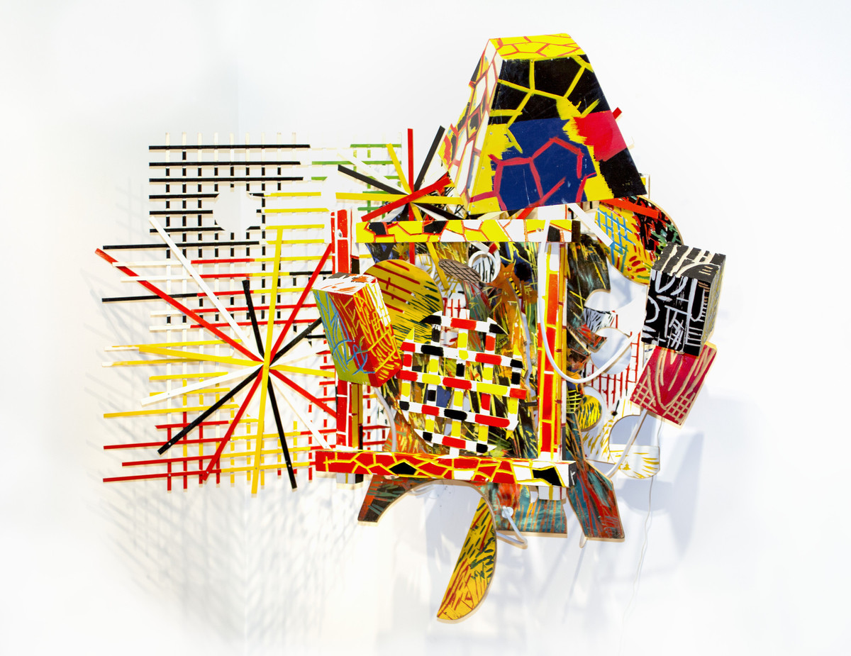 The energetic quality woven with improvisation creates a complicated relationship between painting, sculpture, and architecture. Pfaff uses a wide range of materials from steel, wood, resin, plastic, fiberglass, plaster and most recently the incorporation of photographs and images. Pfaff loves experimenting and shared, “I’ve never taken a sculpture class. Sometimes I was never wearing glasses.”