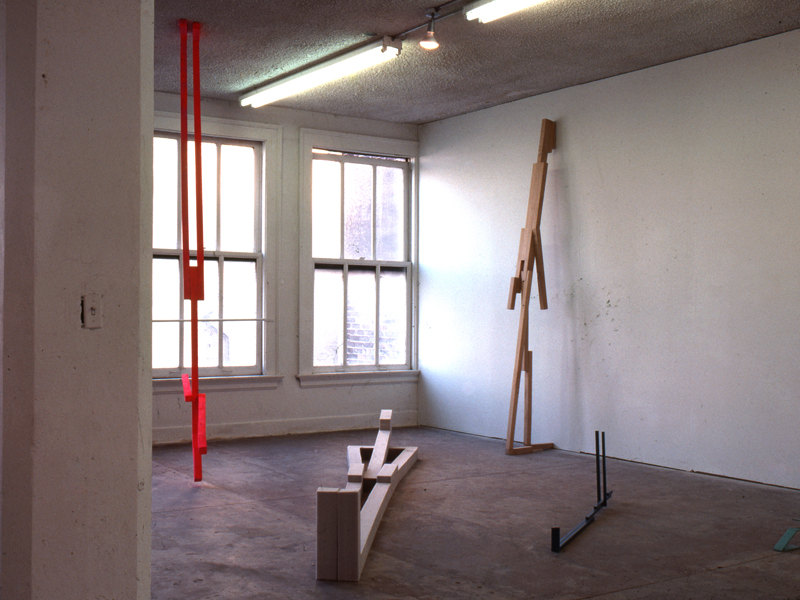 In this Installation in Vernacular Abstraction, curated by Roberta Smith, at the Spiral Wacoal Art Center, Tokyo, Japan 1985, Pfaff used many local inspirations in her work.