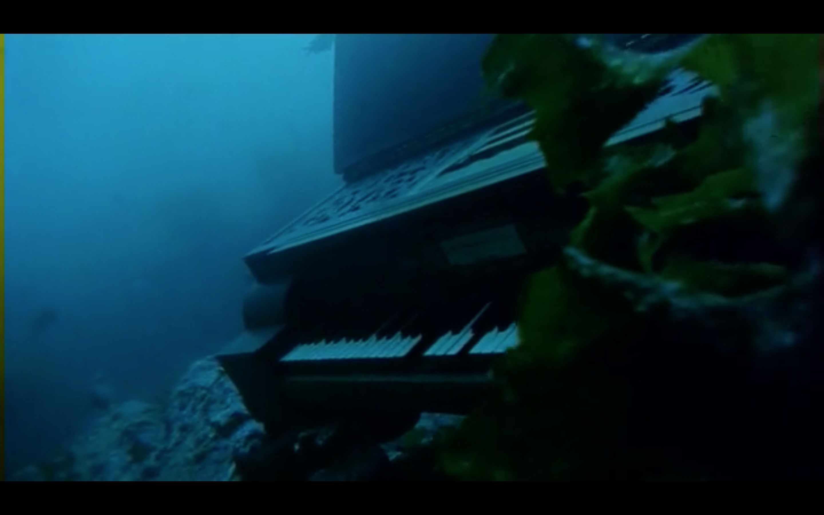Lastly, I would like to move away from the sensory dimensions of Ada’s relationships, and talk instead about the visuality of the movie’s final image. As Ada, Flora, and Baines leave New Zealand by boat, Ada’s piano weighs the boat down. She tells them to throw it overboard, and after protest from Baines, he agrees to do so. As the piano sinks, it pulls a coiled rope from the boat; Ada steps on the rope so that it tangles around her ankle, and pulls her down with the piano. After sinking quite deep, she changes her mind about this suicide attempt, unties her leg, and swims to the surface. The piano sinks to the bottom of the ocean. Ada’s voiceover, after describing her new life with Baines, says that sometimes she thinks about her piano, and imagines herself floating above it. We see an image of the piano at the bottom of the sea, with Ada’s floating body tethered to it. The voiceover goes on to say that it is still and silent, and she imagines this at night to lull herself to sleep. This image of Ada’s body is overwhelmingly passive in its visuality, but the silence here is comforting to her instead of oppressive. This is because the visuality is wholly within her possession; the dead Ada of this still image exists only in her mind’s eye, sealed internally to be looked at, heard, perceived in any way, by no one but herself. She says: “It is a weird lullaby, and so it is: it is mine.” Ada is finally, at least in some internal sense, in possession of her own image.