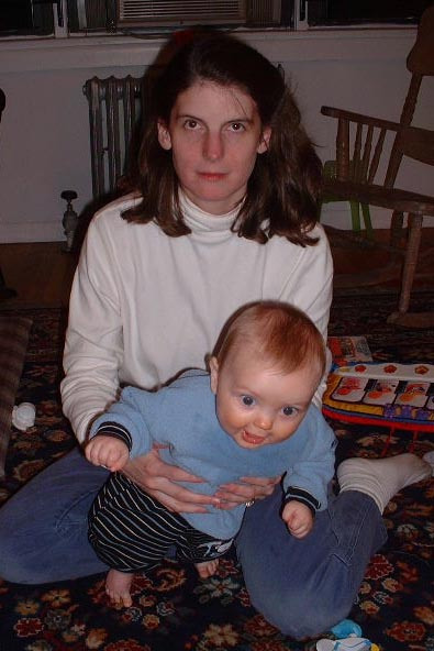 In looking at these hidden mother photographs, I was struck by a similarity of the pose to a photo I love of my mother and younger brother. It is dynamic in a way that Victorian portraits could not be, featuring my brother smiling and clearly being held back from running away. Above him, my mother looks resignedly irritated, in a strikingly similar pose to the Victorian hidden mother, sans sheet, looking directly at the camera like Cameron’s “Holy Family” Madonna. In its fulfilment of the antithesis of the hidden mother portrait (emotive and visible mother, active and smiling baby), this photo does what the hidden mother portrait cannot by telling a story – without editing out one of the characters.