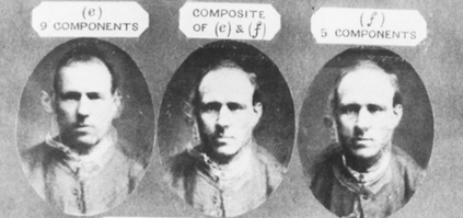 Moreover, his failure to get the photograph from Adler does not mean that he fails at maintaining his camera-like persona, rather he lives up to its flaws. Cameras do not always portray the truth. The images they produce can not only be staged and altered, but they can also be used to demonstrate patterns where they do not exist. For example, in the image below, mugshots of inmates are compiled to determine whether hereditary physical traits can indicate a tendency to commit crime (Sekula, 50).
