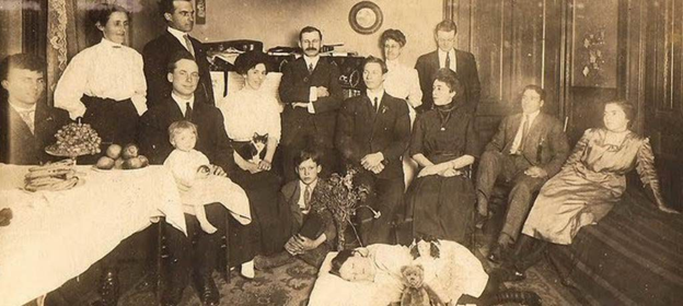 The many different poses and presentation of the dead family member complicates our interpretation of what it is that the family was feeling. Did parent feel denial when they painted the eyes on their children, or posed them as if they were only sleeping? Did families feel acceptance if they took a photo around the casket of family member? What was the mother feeling when she held her dead baby in her arms and posed for the camera? The mourning of any loved one is a complicated process, and it would be foolish to try and make a claim on what individuals were feeling when face with such circumstances. But the variety of composition of these photos and the adherence to taking them as a cultural tradition does at least suggest that both themes of photographing, denial and romantic acceptance, are socially acceptable ways of mourning someone loss. The concept of death was more familiar, and it was something that could be more continually present for these families.