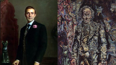 This is so interesting! The right portrait is truly so grotesque — I would likely also lose my self-perception if my portrait appeared like that. Thanks for sharing!