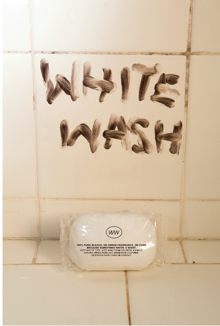 The advertisement that most resonated with me when I was doing this week’s readings is the image of a simple bar of soap against a plain tile background with the words “White Wash” written in black paint. The fine print on the soap’s packaging reads:
