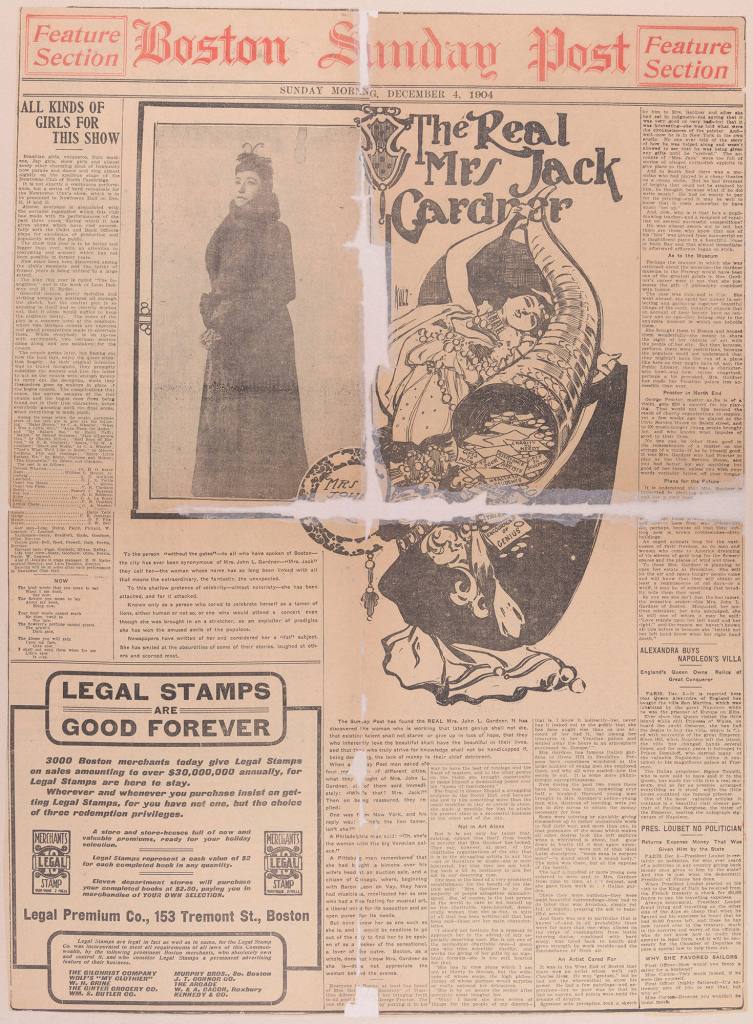 “The Real Mrs. Jack Gardner.” Boston Post, 4 December 1904, printed ink on newspaper.