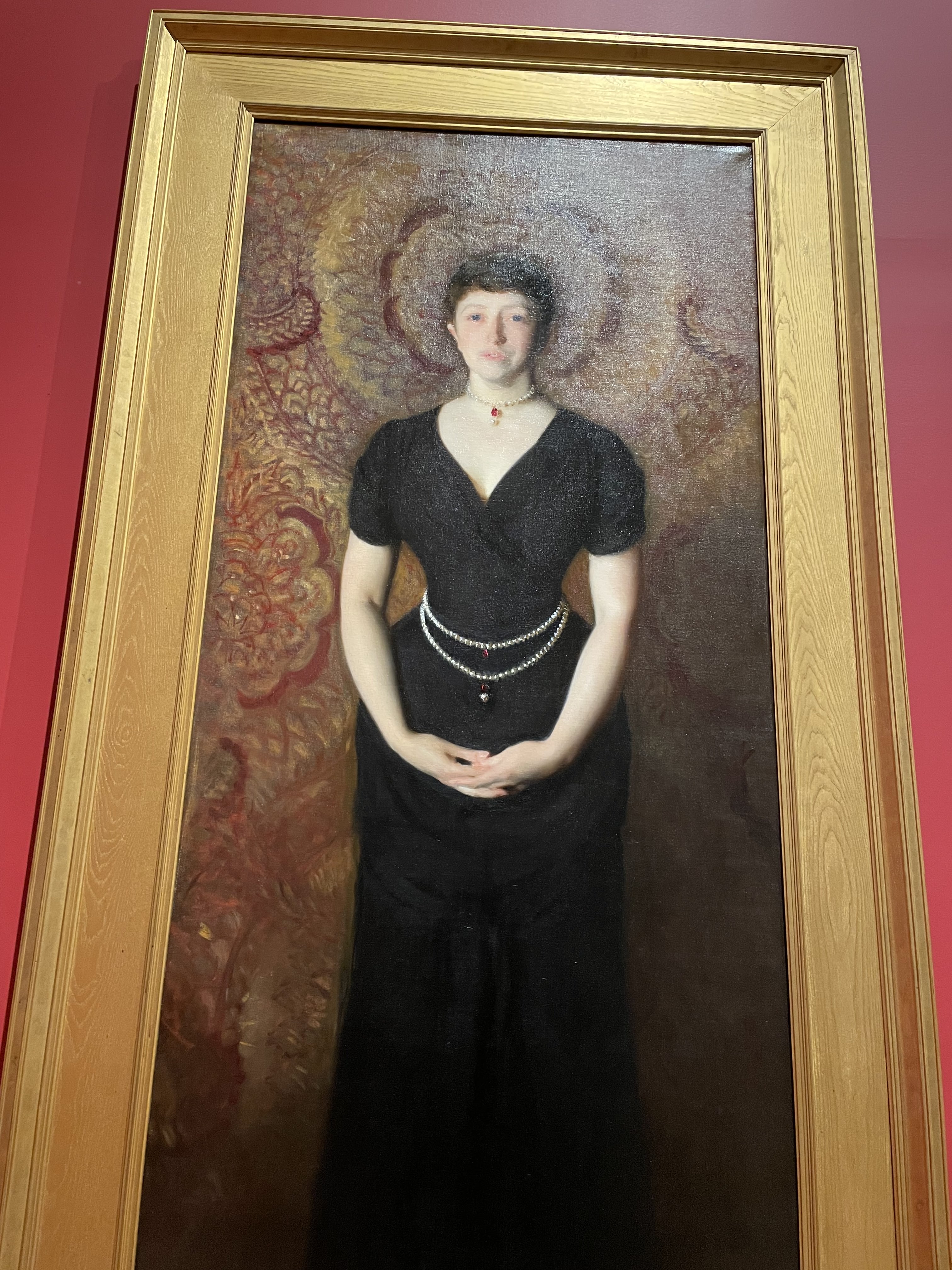 Her most notable intellectual friendships were shared with prolific artists John Singer Sargent and Anders Zorn, whose respective renditions of her garnered both great acclaim and criticism for their provocativeness. Sargent’s 1888 oil painting in particular, considered the Isabella Stewart Gardner portrait, was the centerpiece of the entire “Inventing Isabella” exhibit. The description beside the painting mentioned that Isabella herself “rejected eight renderings of the [portrait’s] face until she was satisfied,” which epitomizes her preoccupation with her own image. In real life the portrait has an almost ethereal quality to it, which can likely be attributed to its halo iconography. With its commanding, direct gaze and straightforward pose, Sargent’s portrait is extremely daring: it perfectly reflects Isabella’s unconventional character.
