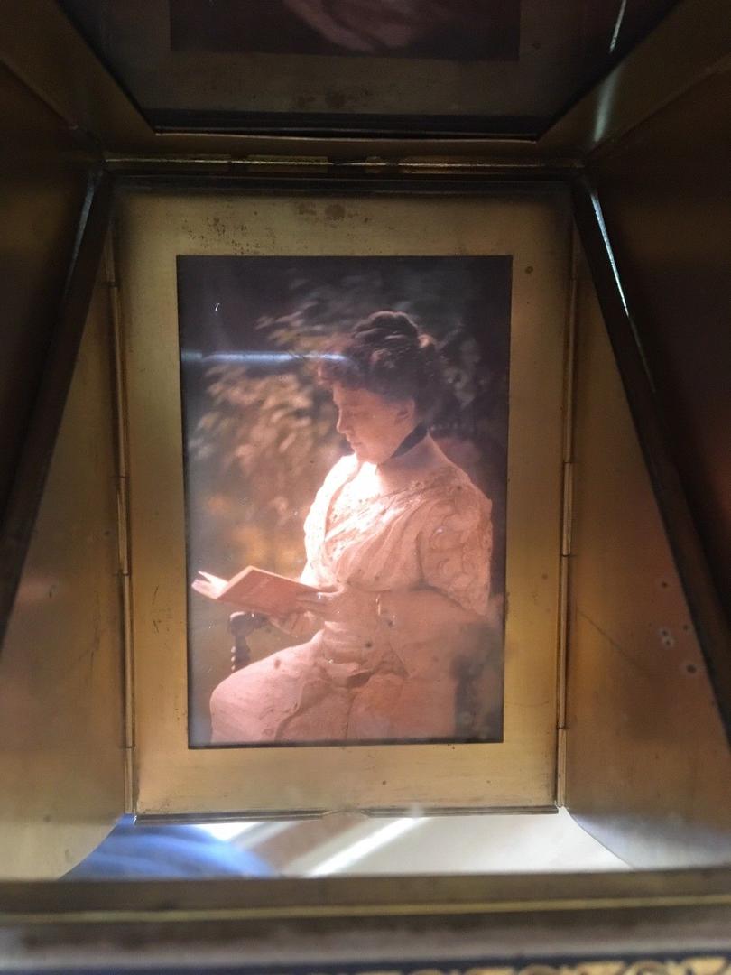 These autochromes by John Cimon Warburg display the beautiful hues captured by the technology. The simultaneously muted and lurid colors are stunning, and — literally! — recolor the way we envision the Edwardian era. Below is an image of an autochrome diascope viewer to give an idea of how people could look at these images, since they are now so rarely exhibited due to their sensitivity.